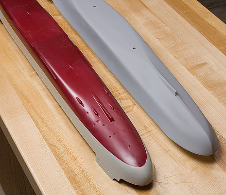 Final shaping was done with smooth files and sandpaper. The hull was given several coats of polyester resin.